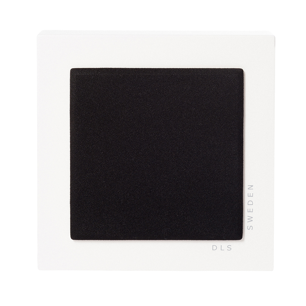 Gennem flere nøglehuller på bagsiden kan højtaleren monteres både vertikalt eller horisontalt, afhængigt af brug eller installation. Flatbox fremstilles i mat hvid finish eller mod et pristillæg i pianolakeret sort. En glædelig detalje er, at DLS generøst har valgt at levere Flatbox med både gråhvide og sorte gitterfronter, noget der både kan give fine kontraster eller bryde af på den rigtige måde afhængigt af dens omgivelser. Årsagen til valget af gråhvidt stof, og ikke helhvidt, er at lettere skjule snavsaftryk eller støvringer omkring elementerne. DLS har virkelig tænkt over alt med Flatbox!
