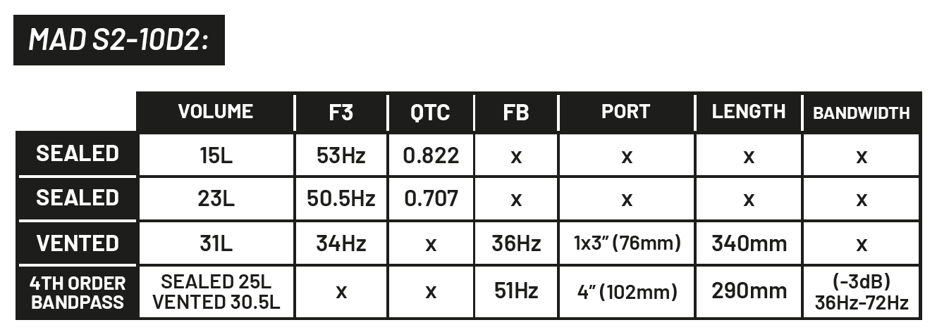 Uanset køretøj, lad MAD-serien være grundlaget i dit lydbyggeri og sørg for, at alle hører dig komme. Et bagagerum fyldt med baselementer, dørene fyldt med mellembasser og bagsædet fyldt med venner, der hopper i takt med musikken, er ikke et livsmål. Det er et must.