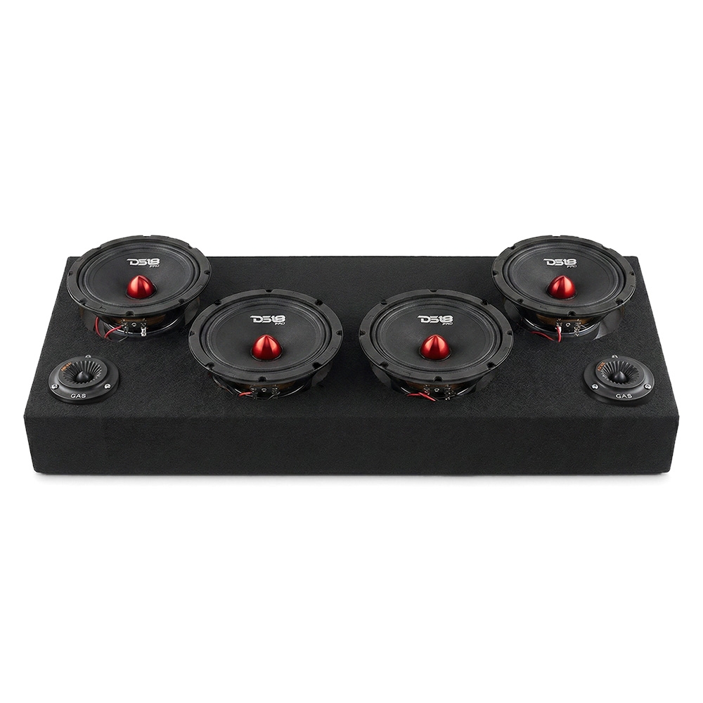 Giv din bil en solid lydopgradering med dette sæt, der kombinerer fire DS18 PRO-GM8B 8-tommer midbas-enheder i en smart designet Auto-Connect VE482SPL "raggarplanke" med kraftfulde MAD PT2-254 horn-diskanter. Et setup, der leverer skarp mellemtonegengivelse og klare toppe, perfekt til dig, der ønsker både tryk og klarhed uden at gå på kompromis med bilens interiør.