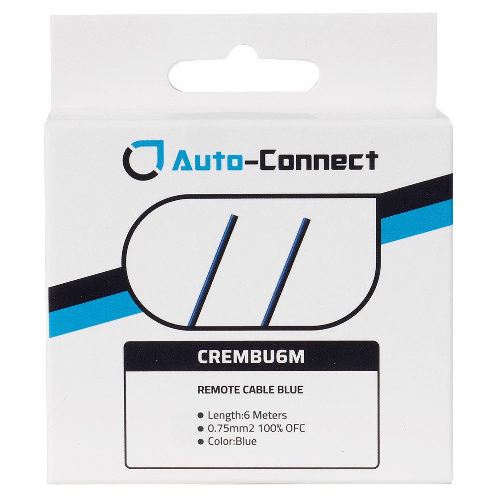 CREMBU6M fra Auto-Connect er et 6 meter langt blåt 0.75mm² kabel i 100% kobber. Primært er det tænkt at blive brugt som remotekabel, fra sluttrinnet til bilstereo eller eksempelvis høj til lavniveauomformer.