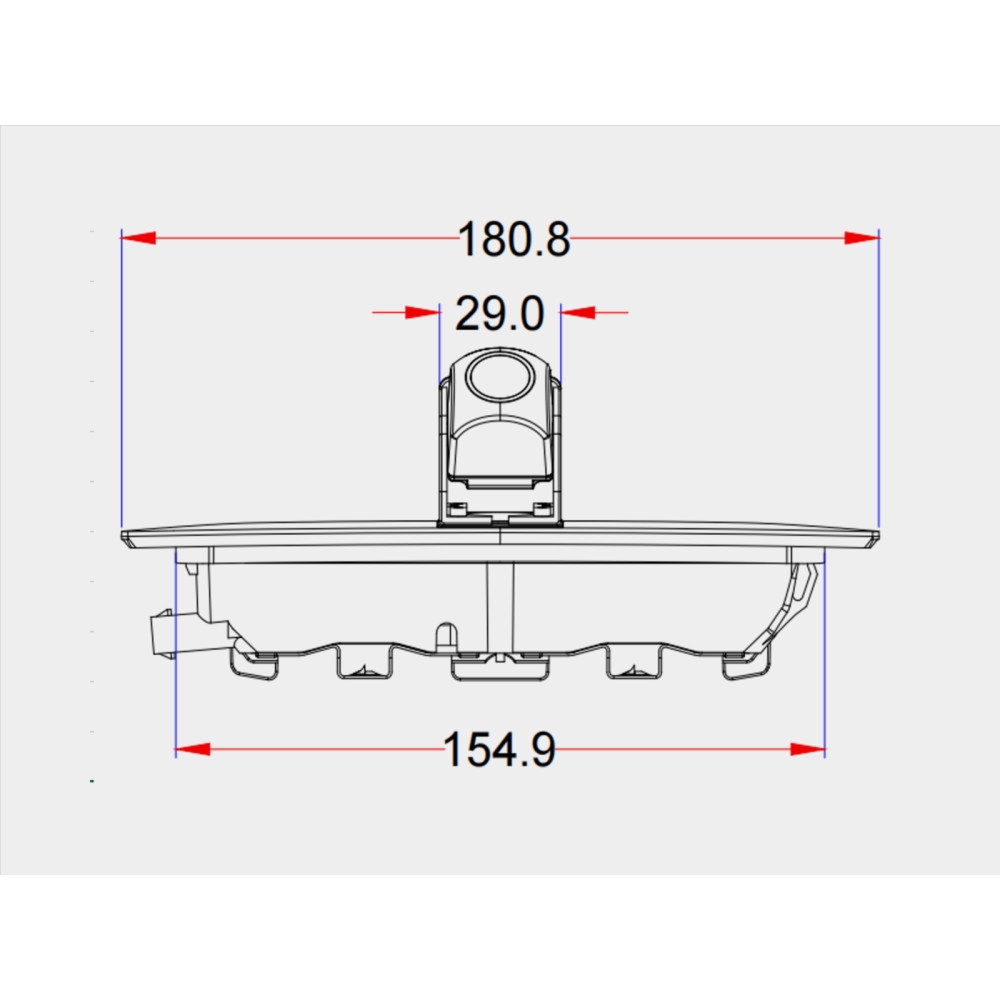 Kameraet er designet i sort og rødt plastmateriale og har en robust konstruktion til langvarig brug. Det tilsluttes nemt til køretøjets baklys og monitor via RCA-video og 4-polet ACV-stik. Passer til Ford Tourneo Connect (SK) 05/2022 - 2025 VW Caddy V (SK) 11/2020 - 2025 Specifikationer Billedsensor: 1/3" CMOS TV-system: NTSC Opløsning: 976 x 592 pixels Linse: 2,6 mm Opløsning: 600 TV-linjer Synsvinkel: Diagonal 160° ±5°, horisontal 115°, vertikal 80° ±5° IP-klassificering: IP68 Tilslutning: 4-polet ACV-systemstik (han) Ø5,2 mm Strømforsyning: +12V / +24V DC, kamera driftsspænding +3V DC Temperaturinterval: Drift -20°C til 70°C, opbevaring -40°C til 80°C Strømforbrug: 100 mA Tilbehør Forlængerkabel 5 m (varenummer 771000-6305) Forlængerkabel 10 m (varenummer 771000-6310) Forlængerkabel 15 m (varenummer 771000-6315) Bemærk, at kameraet kræver korrekt installation, og at køretøjets elektriske system skal kontrolleres for kompatibilitet før montering. Kontroller også kameraets synsvinkel og funktion med en testmonitor på installationsstedet for at sikre korrekt justering og billedkvalitet.