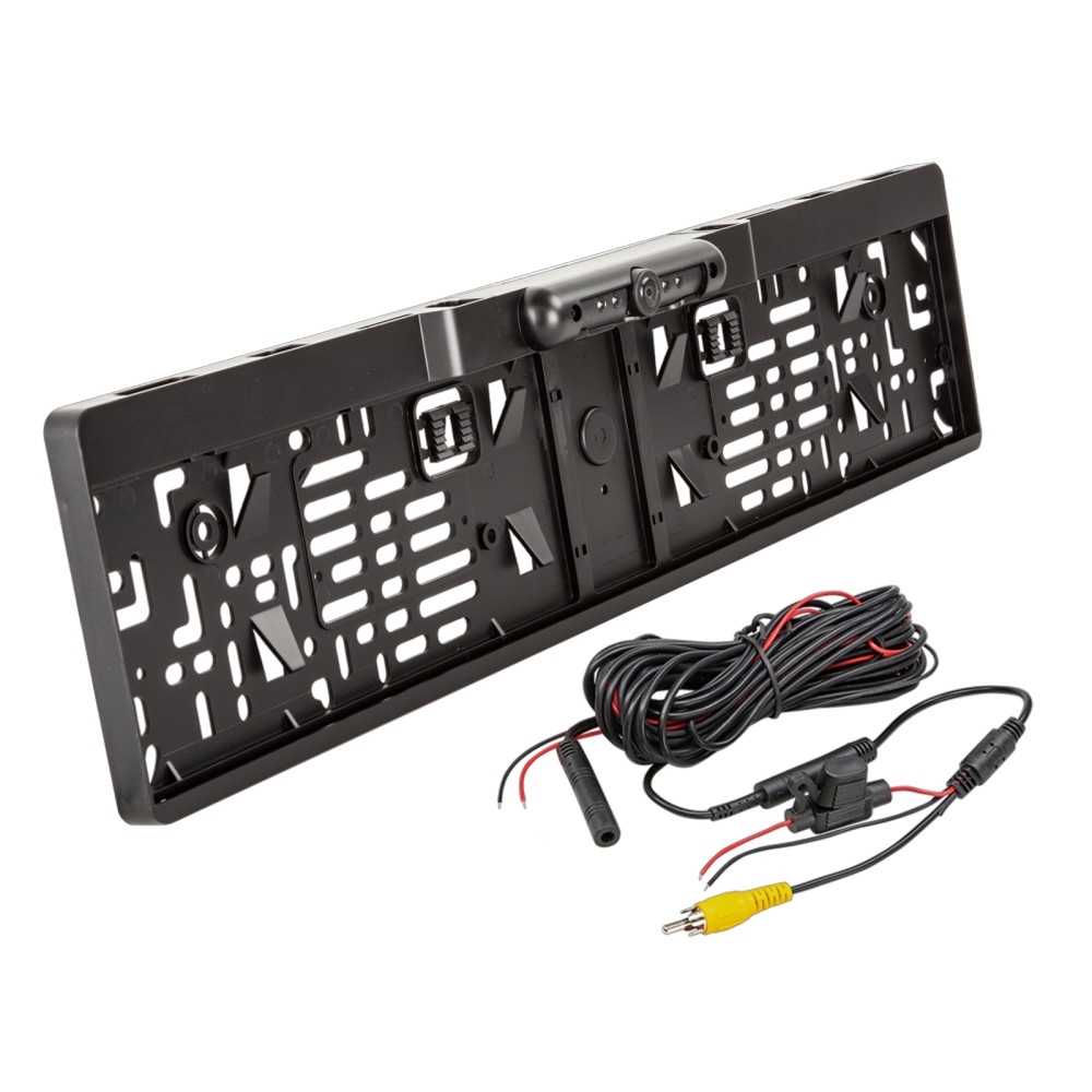 Denne nummerpladeholder er designet til at give en diskret og funktionel løsning til bakning. Før installationen anbefales det at kontrollere kameravinklen og justere den på installationsstedet med en testmonitor. Kameraet kræver en strømforsyning på +12V, hvor den røde kabel er tilsluttet en vekselstrøm og den sorte kabel er jordet direkte til bilens karrosseri. Videoudgangen er tilsluttet via en RCA-kontakt.