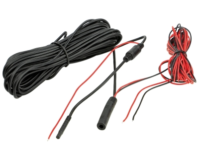Dette kabel muliggør nem installation og tilslutning af kameraet til bilens system. Den røde strømkabel tilsluttes baklyset for at aktivere kameraet, når bilen bakker, mens den sorte jordkabel tilsluttes direkte til bilens karrosseri for at sikre en stabil jordforbindelse. Kabelens længde på 15 meter giver fleksibilitet ved installation og gør det muligt at placere kameraet på ønsket sted.