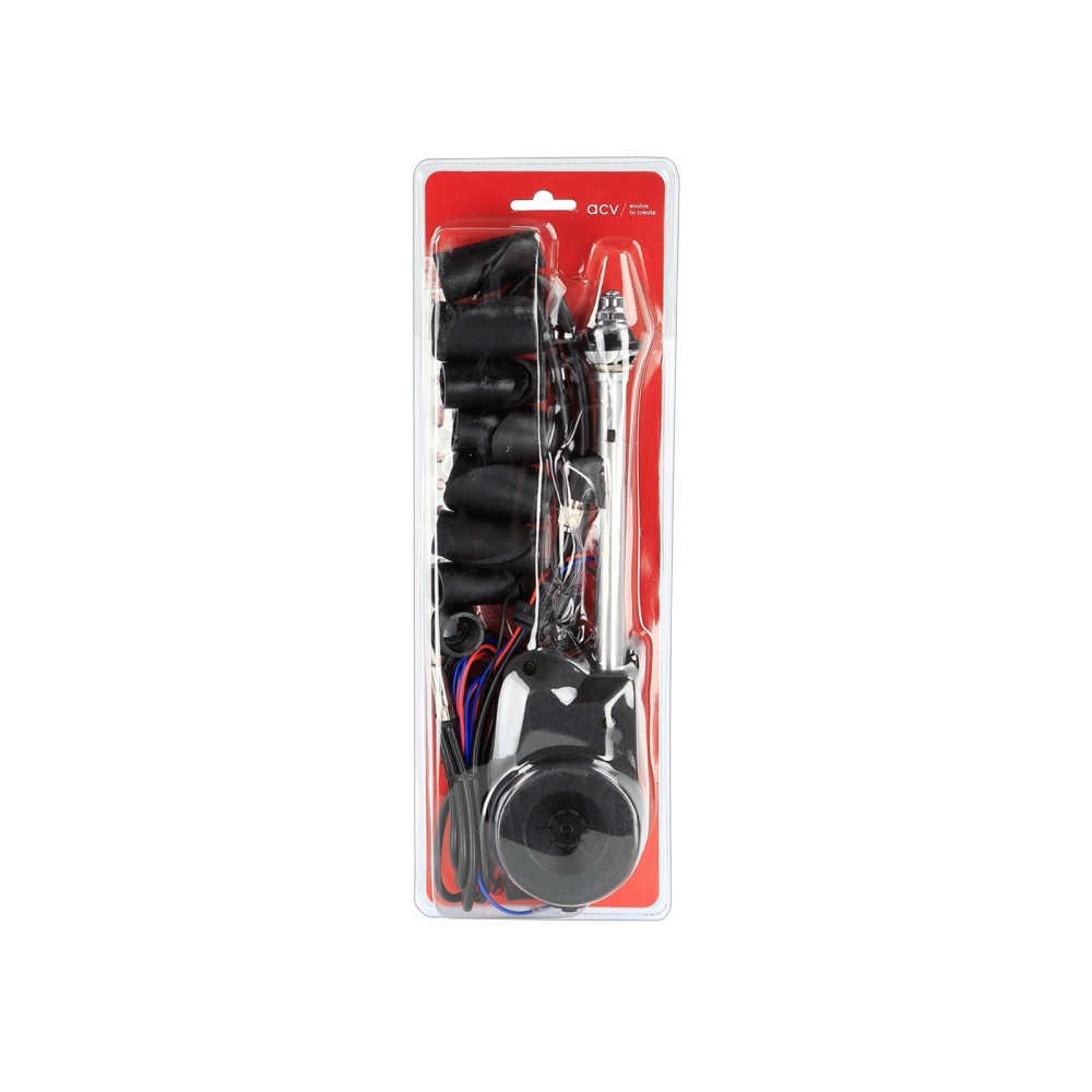 ACV 151000-38-1 er en teleskopantenne med automatisk funktion til AM/FM, designet til montering på bilens skærme eller søjler. Antennen er fremstillet af materialer af høj kvalitet, som giver en holdbar konstruktion og sikrer optimal modtagelse selv under vanskelige forhold. For at optimere antennemodtagelsen er det vigtigt at sikre en god jordforbindelse ved montering. Det anbefales at fjerne eventuel maling ved kontaktpunkterne og beskytte mod korrosion med passende kontaktpasta. Kontroller installationsmål og forhold før installation, da hullet kan have brug for at blive udvidet til køretøjer med OEM-antenne. Antennen er universel og kan tilpasses forskellige biler.