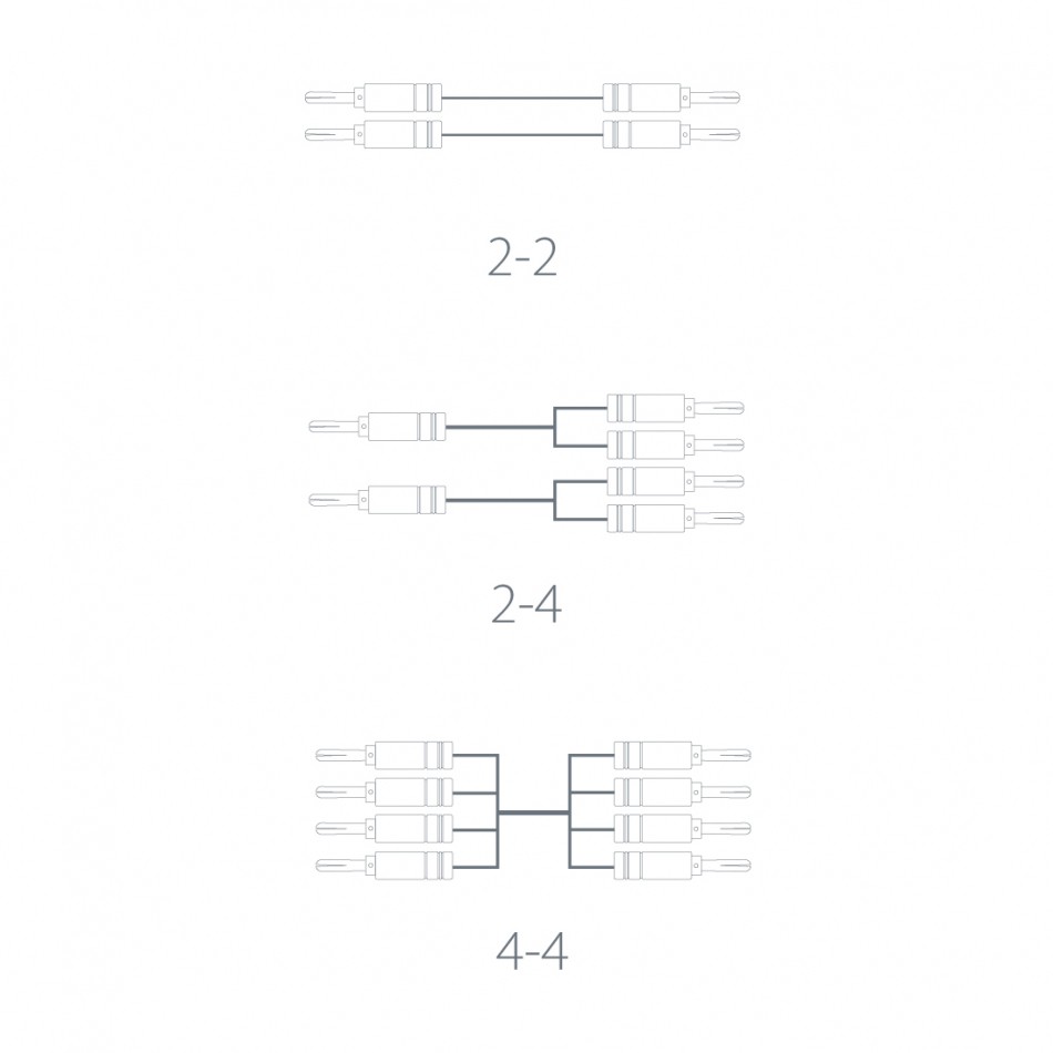 - Fire OFC-kobberledere beregnet til bi-amp tilslutning