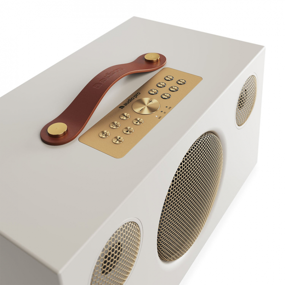 Dune Classic-versionen bryder med de øvrige finish i serien ved at droppe stof fronten og i stedet lade elementerne træde frem bag et åbent gitter. Toppen med læderhåndtaget er både visuelt og praktisk, en henvisning til Audio Pros historie, uden at gå på kompromis med det samtidige udtryk. Resultatet? Et bærbart designikon med pondus.