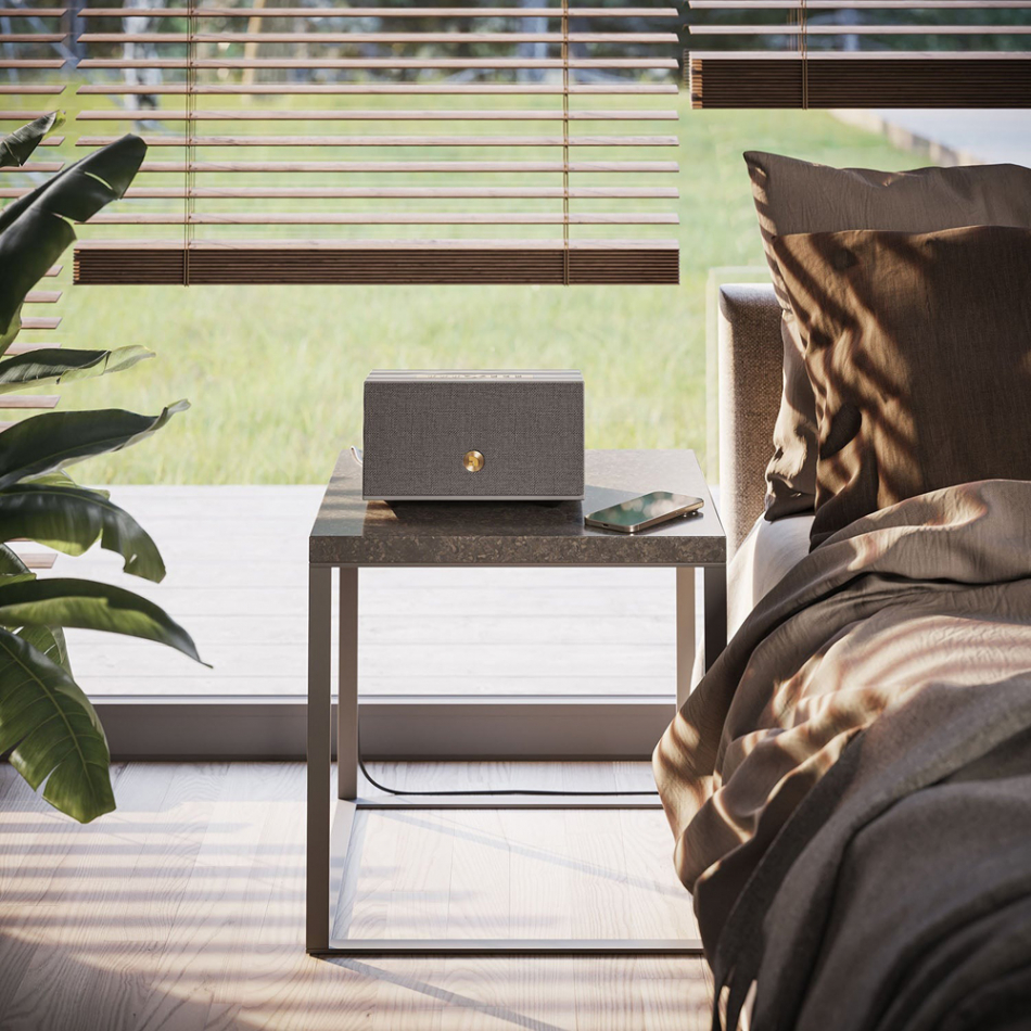 Bag det stofbeklædte frontpanel gemmer der sig et 2.1-system med digital forstærkning og et fyldigt 4" basenhed, flankeret af dobbelte diskanter. Konstruktionen er optimeret til at levere overraskende meget bas, trods kompakte mål, perfekt til mindre rum, køkken, skrivebord eller soveværelse.