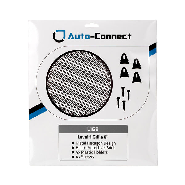Auto-Connect L1G8 er et højtalergitter i stål til 8-tommers højtalere. Det beskytter hele forsiden fra ophæng til membran og støvhætte uden at påvirke lyden. Perfekt når du vil sikre dine enheder mod dagligt slid, bagagelast eller klodsede fødder.