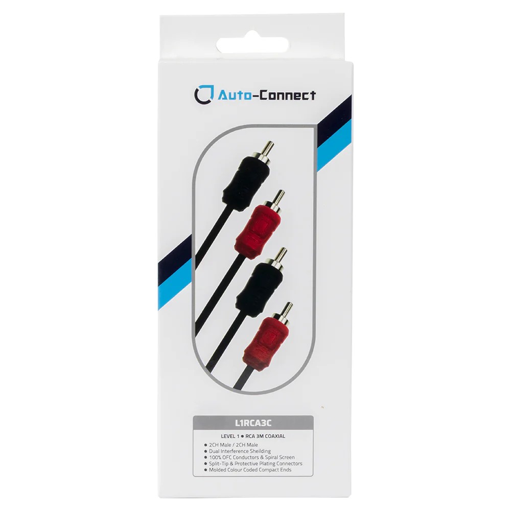 Auto-Connect L1RCA3C er et 3 meter langt RCA-kabel med koaksial konstruktion, udviklet til sikker og støjfri signaloverførsel i bilen. Med en centralkerne i iltfri kobber, dobbelt støjafskærmning og pålidelige split-tip-stik leverer den stabil lyd – selv når forholdene ikke er perfekte. Dette er et kabel, der gør sit job uden at gøre væsen af sig. Uovertruffen i sin klasse.