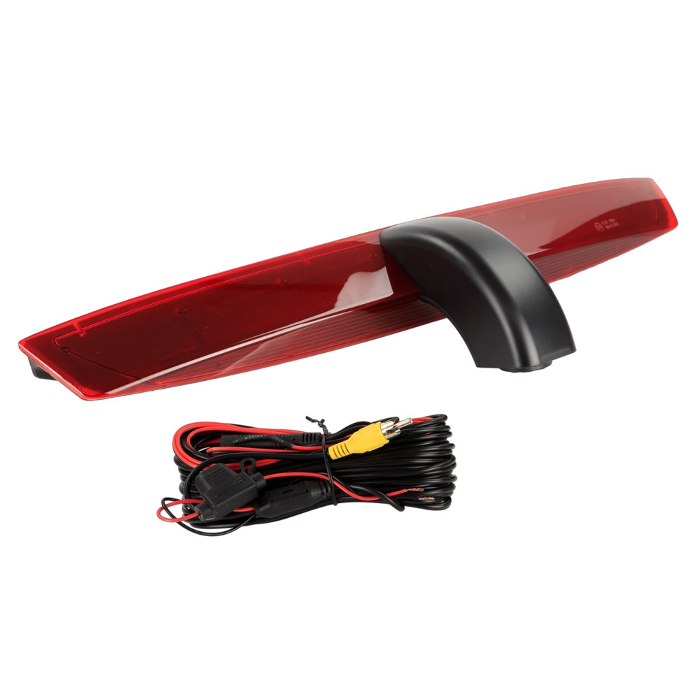 Dette kamera har et plastdesign og fås i sort og rød farve. Retningslinjer kan aktiveres eller deaktiveres via en jumper, og synsvinklen kan justeres for at passe til forskellige installationsbehov. Kameraet har en 1/3" CMOS billedsensor og bruger NTSC TV-system. Med effektive pixels på 976 x 592 og en opløsning på 600 TV-linjer giver det et klart og tydeligt billede. Linse vinklen er diagonalt 160° med en horisontal synsvinkel på 115° og vertikal synsvinkel på 75°. Kameraet er konstrueret til at fungere i temperaturer mellem -30°C og 75°C og kan opbevares i temperaturer mellem -40°C og 80°C. Målene er tilpasset for at passe til det OEM-bremselys, som det erstatter. Tilslutningsanvisninger: - Rød kabel: +12V strømforsyning. - Sort kabel: direkte jordforbindelse til bilens karrosseri. - Gul RCA-kabel: video tilslutning. - Grøn jumper: aktivere/deaktivere retningslinjer. Det er vigtigt at sikre, at det tredje bremselys er korrekt tilsluttet ved installation af bakkameraet for at undgå fejlinformationer. Hvis der opstår en fejl i informationsdisplayet, kan OEM-lampen tilsluttes parallelt, eller en belastningsmodstand (10k Ohm, 5 Watt min) kan bruges til at simulere OEM-lampen.
