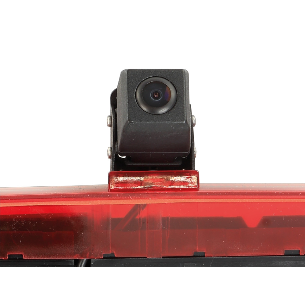 Bagudkameraet er specielt designet til at erstatte det tredje bremselys og tilbyder en justerbar visning med retningslinjer, der kan aktiveres eller deaktiveres via en jumper. Før installation anbefales det at kontrollere kameravinklen og justeringen på installationsstedet med en testmonitor. Kameraet har en driftsspænding på +12V og tilsluttes nemt ved hjælp af en 4-polet ACV-systemkontakt.