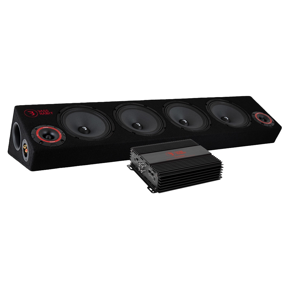 Bass Habit SPL64 med RA500W er et sæt med en portet raggarplanke, som har fire 6,5" midbaser og to SPL-diskanter fra Play-serien, sammen med en prisvenlig 2-kanals forstærker, der giver god effekt til frontsystemer og mindre basbokse. Perfekt til dig, der ønsker høj og klar lyd uden at det koster for meget.
