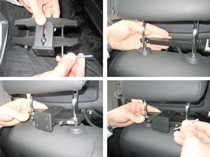 Beslaget placeres på forsædets nakkestøtte. Du kan montere det selv på et par minutter, monteringsvejledning medfølger. Beslagets monteringsplade har forborede huller, som gør det nemmere at montere en holder.