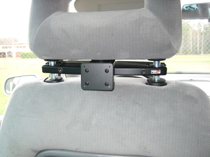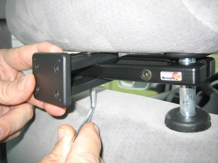 Beslaget placeres på forsædets nakkestøtte. Du kan montere det selv på et par minutter, monteringsvejledning medfølger. Beslagets monteringsplade har forborede huller, som gør monteringen af en holder lettere.