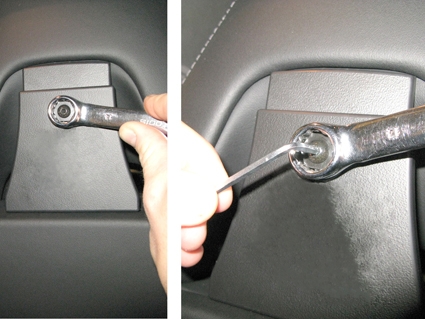 2. Placer beslagets tynde underdel i rillen i rygstøtten.