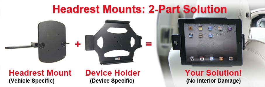Brodits nakkestøttebeslag er bilspecifikt og fungerer som en monteringsplatform. Du skal også bruge en holder til den enhed, du ønsker at montere. Holdere til beslaget finder du nemt ved at søge efter din enhed på vores hjemmeside. Alle Brodits holdere kan monteres på nakkestøttebeslaget, men nogle holdere til tablets er kollisionstestede og godkendt til brug på Brodits nakkestøtte (se efter kollisionstestmærkning).