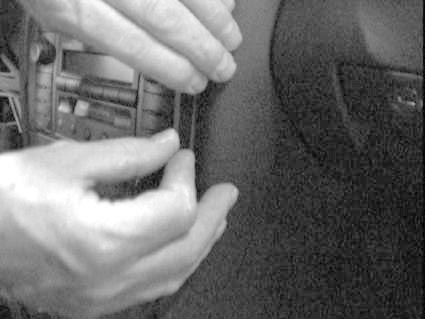 Pres den medfølgende fjederåbner ind i sprækken mellem kontrolpanelet og den omgivende ramme. Fjern tapen på monteringsdelen til ProClip-holderen.
