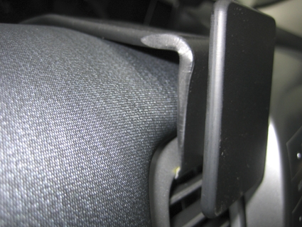 2. Pres beslagets nederste del mod luftventilen, så den vinklet øverste del hægter fast i sprækken.