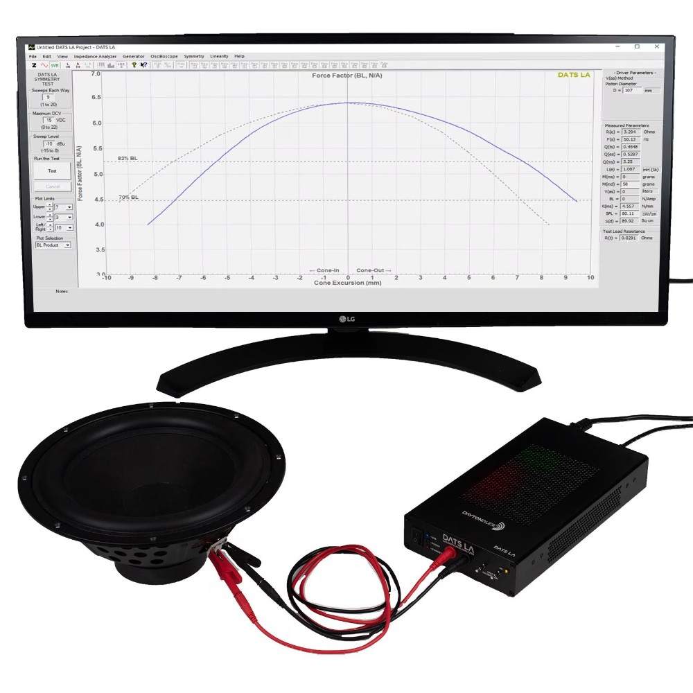 Dayton Audio DATS LA er værktøjet for designere og udviklere, der har brug for mere end traditionelle T/S- og impedansmålinger. Med en integreret 100 watts forstærker, patenteret DC-bias-analyse og et komplet målesystem til alle slags parametre giver DATS LA en unik indsigt i, hvordan en enhed faktisk opfører sig under reel belastning.