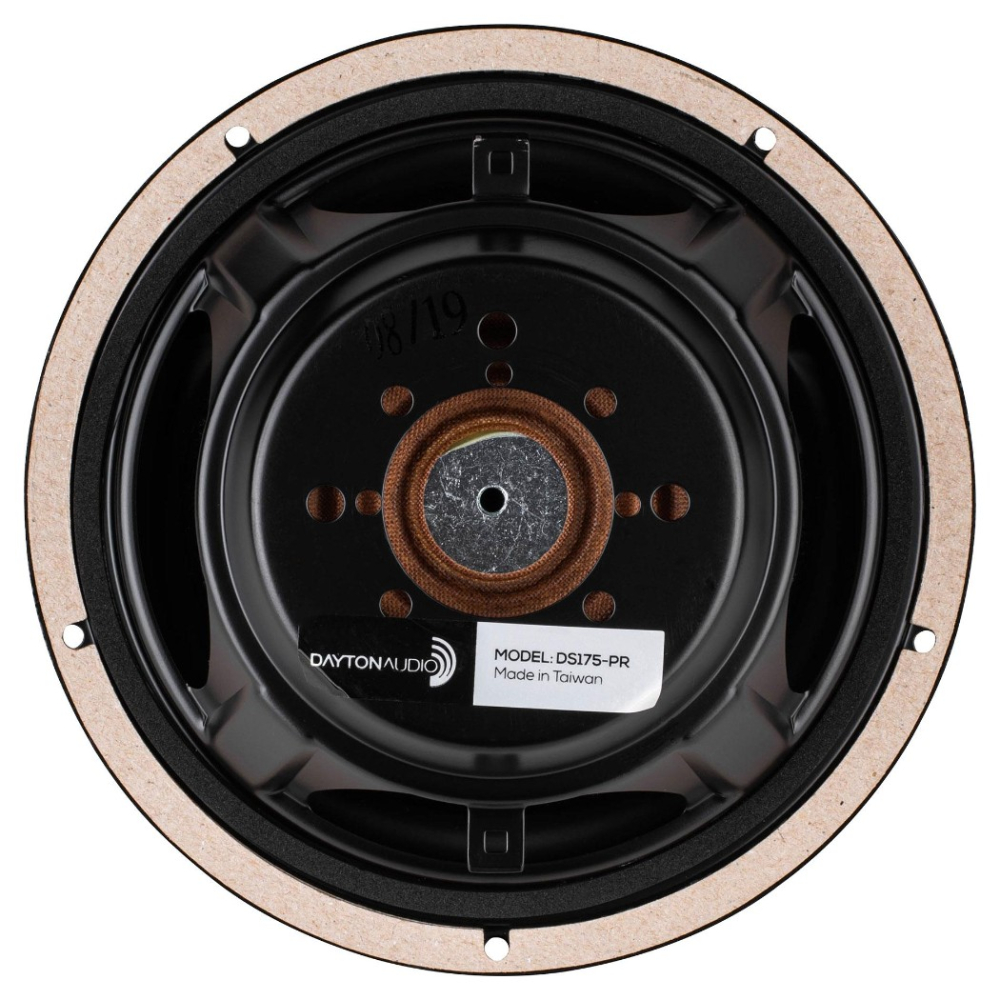 Dayton Audio DS175-PR er en 6.5-tums slavbas i Designer Series, udviklet til mindre højttalerkonstruktioner, hvor en traditionel portløsning optager for meget plads eller er svær at afstemme på en fornuftig måde. Den er bygget som en allroundmodel til både nybyg og erstatningsprojekter, med stålkurv, gummiophæng og polybehandlet papkegle. På bagsiden findes en M5-gevind til ekstra vægt, hvilket gør det nemt at finjustere afstemningen efter kabinettets volumen og anvendelsesområde.