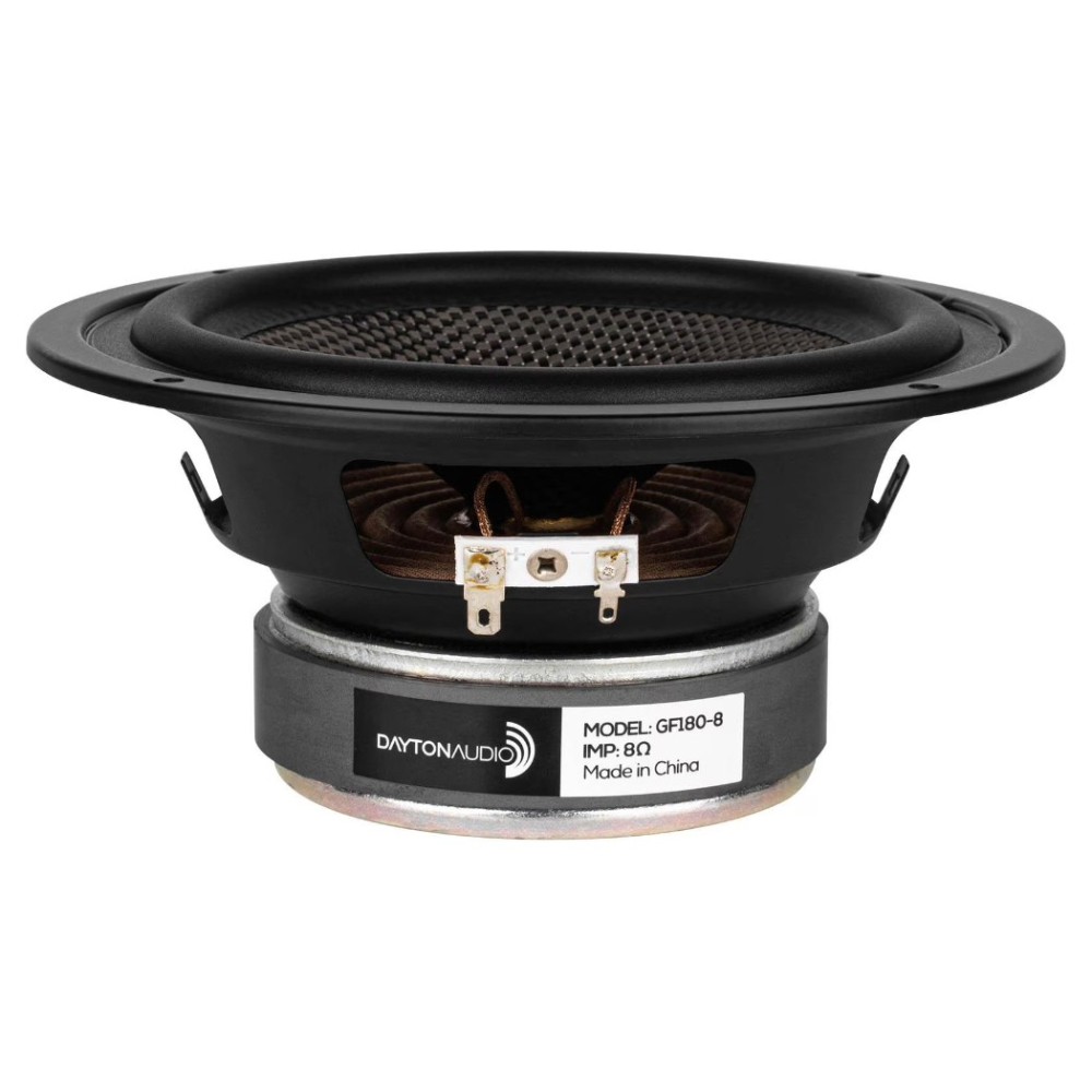 Dayton Audio GF180-8 er en 6.5" bashøjttaler, der passer fremragende til 2-vejs konstruktioner, hvor man ønsker en stabil og forudsigelig gengivelse gennem både bas og mellemtone. Den vævede glasfiberkegle holder resonanser under kontrol og giver en jævn respons op i frekvens, hvilket gør det let at kombinere med diskant ved deling omkring 2.000 Hz. Konstruktionen gør det til et sikkert valg i alt fra stativhøjttalere til større højttalersystemer.