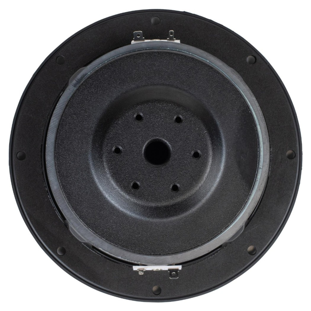 Motorkonstruktionen er ventileret i flere trin for at holde temperaturen nede og reducere kompression ved høj belastning. Den interne aluminiumring stabiliserer induktansen og bidrager til en renere gengivelse. Sammen med en robust ophængning og stabil stålkonstruktion giver det en enhed, der kan klare høj belastning over tid uden at miste kontrol.