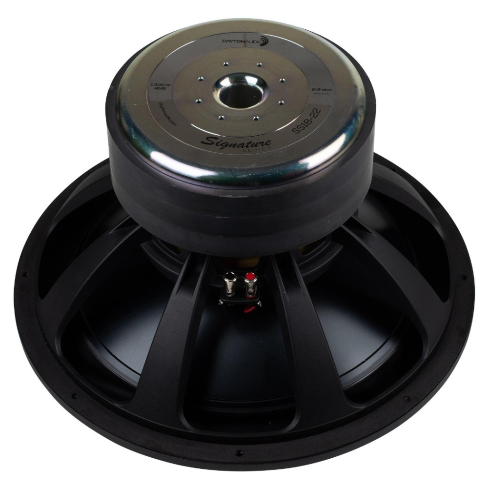 Dayton Audio SS18-22 er en 18-tommer basenhed i Signature Series med dobbelt 2 ohm svingspoler, aluminiumskegle og 3 tommer svingspole. Her er det dybden, keglearealet og den rene råstyrke, der sætter tonen. En resonansfrekvens på 21 Hz, 26 mm Xmax og 1300 W RMS placerer SS18-22 i den tungere klasse, men det er ikke kun en stor enhed, der kan spille højt. Den stive kegle, den kraftige motor og den generøse køling giver også bedre orden, når slagene bliver store, og effekten er konstant over længere tid.