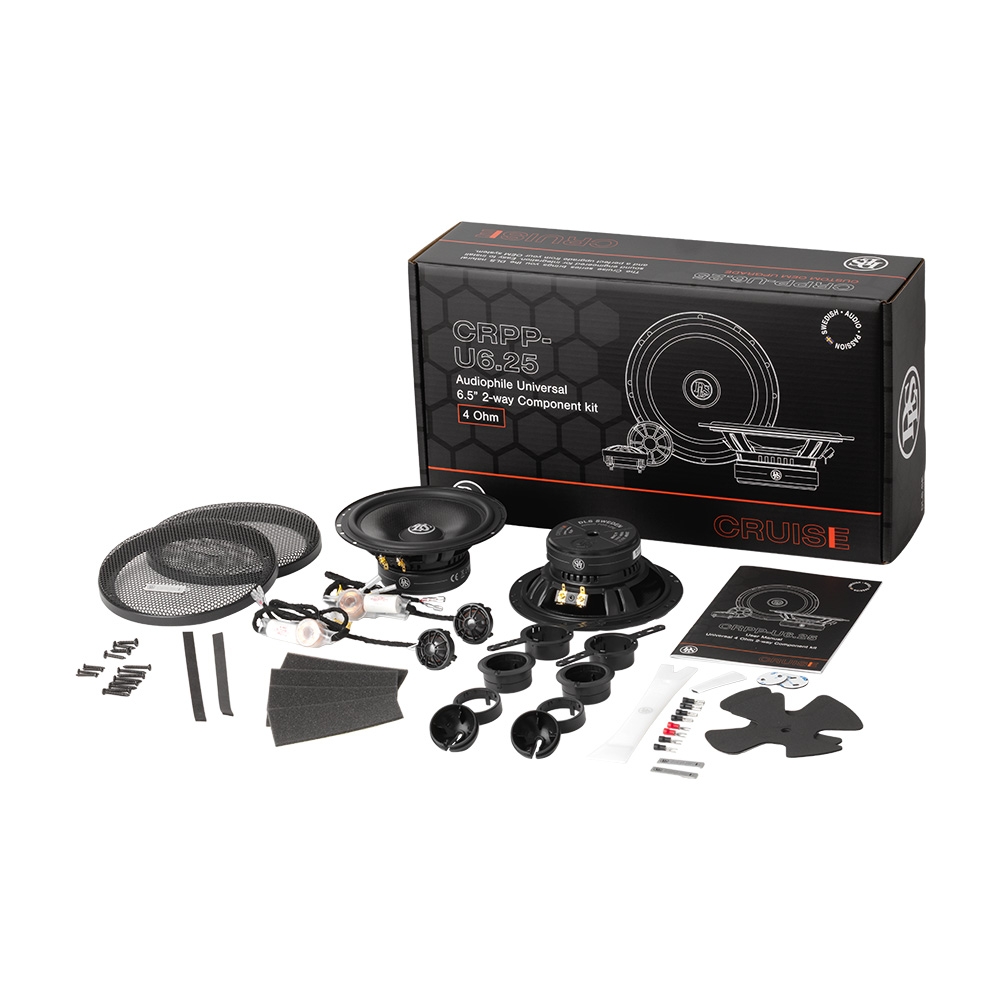 DLS Cruise CRPP-U6.25 er et komplet kitsystem med mellemtone og diskant bygget til dig, der vil opgradere lyden i bilen én gang for alle. Med et naturligt, klart og dynamisk lyd løfter højttalerne hver rejse, uanset hvor kort den er. I kassen finder du CRPP-UW64 og CRPP-UT25, sammen med delefilter med Mundorf-kondensator og sekskantmønstrede gitter til synlig montering i dørsiden, kickpanel eller kasse.