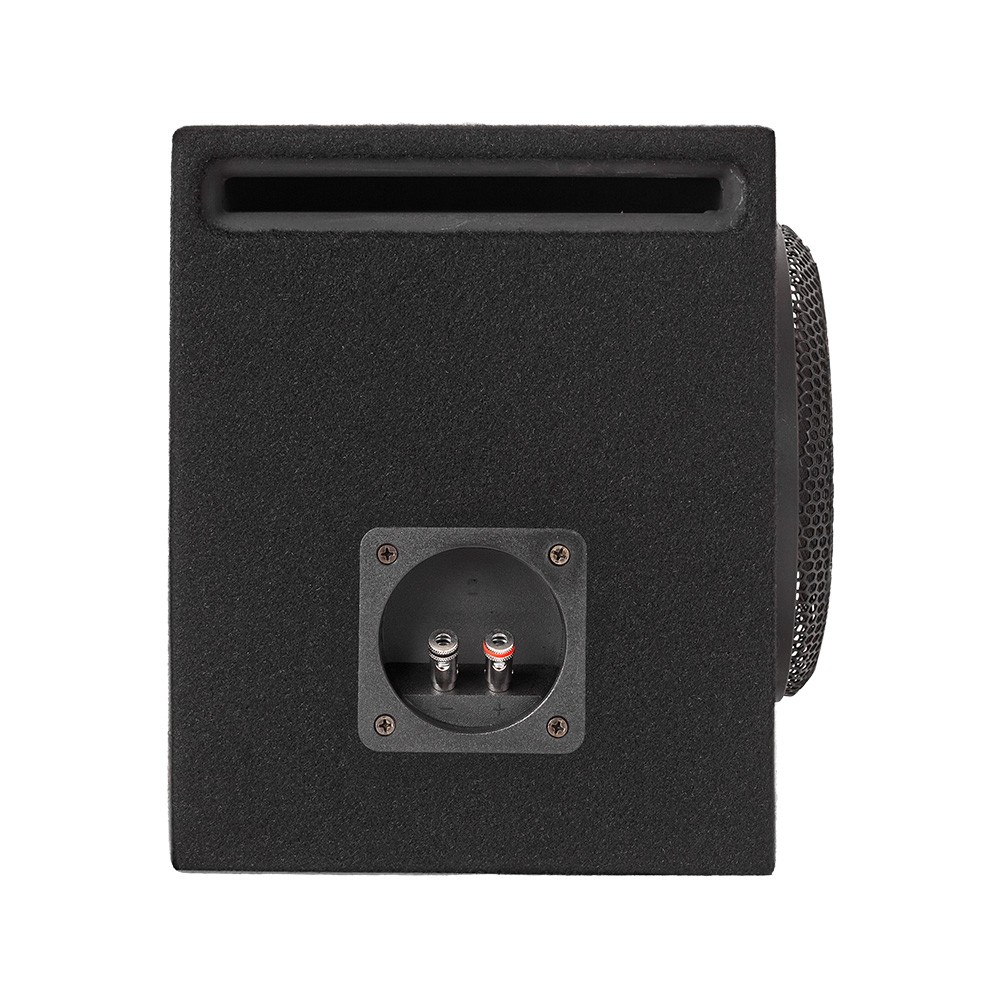 Boksen er formbygget til at forsvinde i bilen, med skjult placering og en finish, der føles gennemarbejdet. Stabilt kabinet, tydelig terminalplacering og beskyttelsesgitter i metal gør installationen robust og klar til langvarig brug. Basreflekskonstruktionen med spalteport er valgt for sin effektivitet i lille volumen og evne til at bevare kontrollen, når du skruer op for lyden. I praksis betyder det en bund, der føles tæt, smidig og let at integrere med frontsystemet.