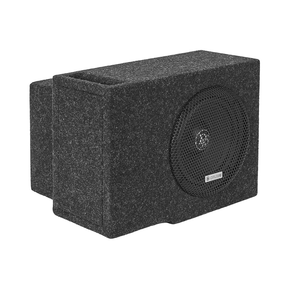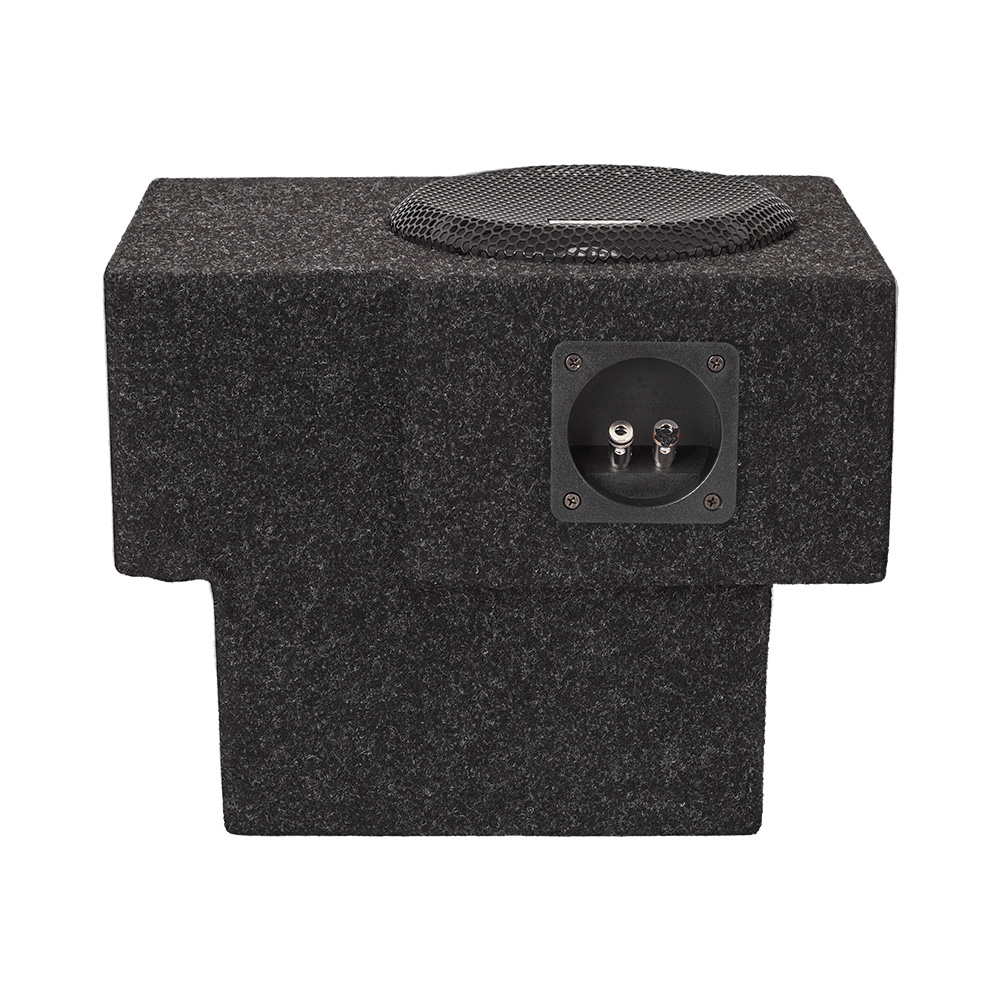Enheden er formbygget til at forsvinde i bilen, med skjult placering og en finish, der føles gennemarbejdet. Stabilt kabinet, tydelig terminalplacering og beskyttelsesgitter i metal gør installationen robust og klar til langvarig brug. Basreflekskonstruktionen med spalteport er valgt for sin effektivitet i lille volumen og sin evne til at bevare kontrollen, når du skruer op for volumen. I praksis betyder det en bund, der føles tæt, smidig og let at integrere med frontsættet.