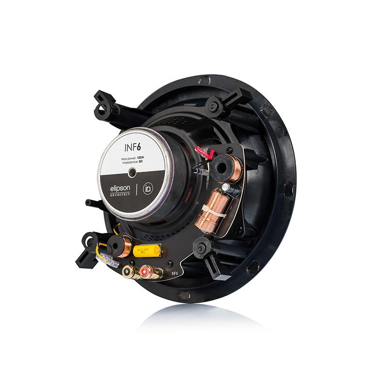 Elipson Infinite IC6 er designet til at falde ind i loft eller væg med en tynd ramme og hurtigfästesystem, der forenkler installationen. Den passer godt i større rum og kan bruges til at skabe et omsluttende lydlandskab i hjemmebiografen eller til at supplere et Dolby Atmos-system. Den roterbare diskant gør, at du kan rette lyden, hvor du vil, for optimal lydspredning.