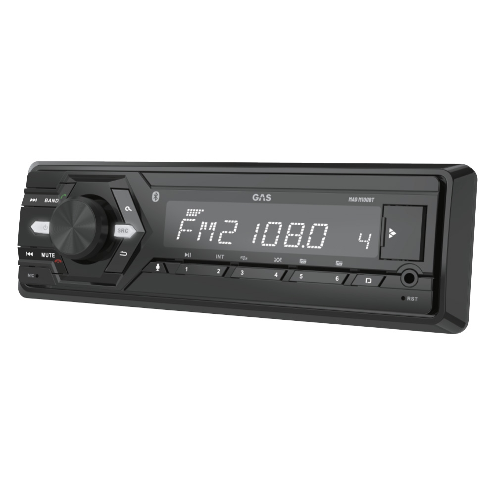 GAS MAD M100-BT er en enkel-DIN-stereo, der kombinerer stilren design med imponerende funktionalitet i sin prisklasse. Som en åndelig efterfølger til den ekstremt populære GMA151BT tager MAD M100-BT det hele et skridt videre med forbedrede tilslutningsmuligheder og ikke mindst to Bluetooth-mikrofoner.