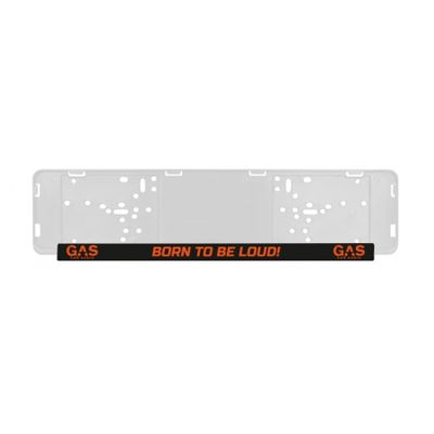 Regplåtslist som gör det tydligt vilket flagg du åker under: GAS - BORN TO BE LOUD!
