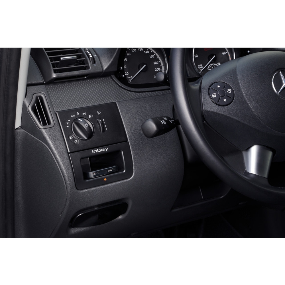 ACV 241190-56-1 er en INBAY® lomme til Mercedes Vito/Viano (W639), der muliggør trådløs induktiv opladning af smartphones. Produktet er fremstillet i Tyskland og understøtter en effekt på op til 10 Watt.