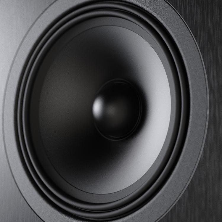 Kabinettet er bygget i MDF med intern dæmpning af polyester og tværgående afstivninger, som hjælper med at holde resonanser og vibrationer under kontrol. Konstruktionen er optimeret til placering på gulvet, hvor den let skrånende form og højden over gulvet arbejder sammen med de dobbelte basporte i soklen. Resultatet er en lyd med god energi og spredning, uden at højttaleren føles overdrevent svær at placere i almindelige stuer.