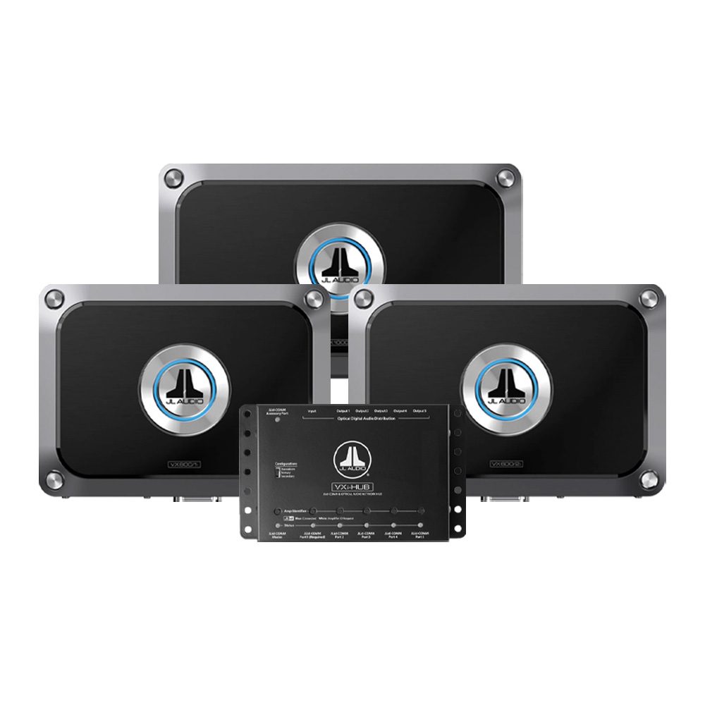 JL Audio VXi-HUB er et must, hvis du planlægger at bygge et lydsystem med flere VXi-forstærkere, der skal kommunikere sammen. Hubben tillader tilslutning af lyd og DSP-styring til op til 5 ekstra VXi-forstærkere, men kan også styre en ekstra VXi-HUB for op til 10 forstærkere, der kommunikerer og arbejder sammen. DSP-styring og kommunikation foregår via CAT5-netværkskabler, og lydsignalet går via optiske TOSLINK-kabler.