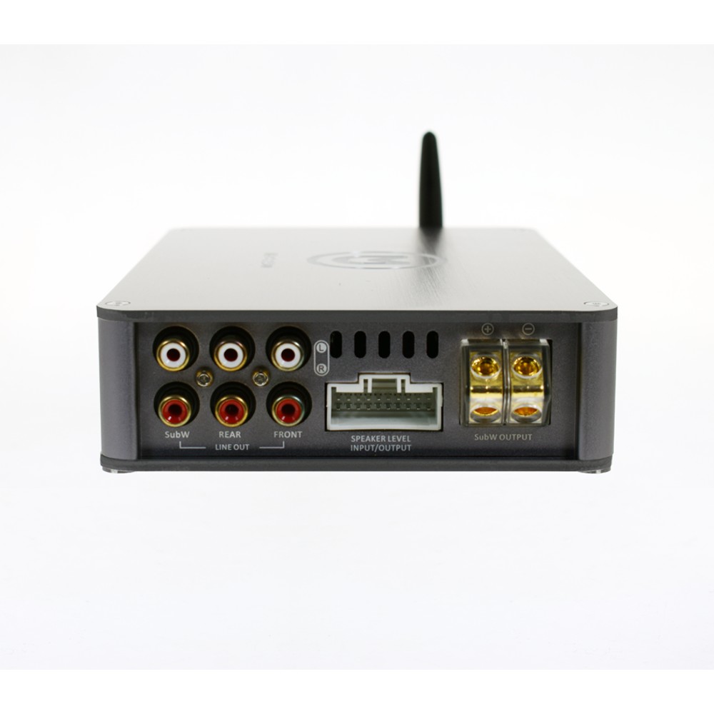 Den indbyggede DSP fra Analog Devices giver avancerede justeringsmuligheder via Bluetooth-appen. Her kan niveauer, delingsfrekvenser, tidsforsinkelse og equalization tilpasses efter bilens akustik og lytteposition, hvilket gør det muligt at skabe en mere sammenhængende og kontrolleret lyd end hvad originalsystemet kan klare.