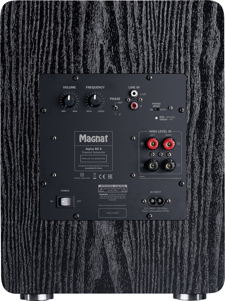 Magnat Alpha RS8 är en fantastiskt välspelande aktiv subwoofer, vars dimension gör den till ett perfekt inslag i de mindre rummen med ett par förstklassiga stativhögtalare. Med ett långslagigt och Klippel-optimerat 8" element kan basen förse anläggningen med bra punch och kraft. Elementet styrs av ett kvalitativt klass D-steg som lämnar 80 Watt RMS. Hela kabinettet vilar på fyra vibrationsdämpande fötter och på frontbaffeln är dubbla Airflex-portar monterade, som ger minimalt med blåsljud. Det du hör är kort och gott en baslåda som spelar tight och musikaliskt!