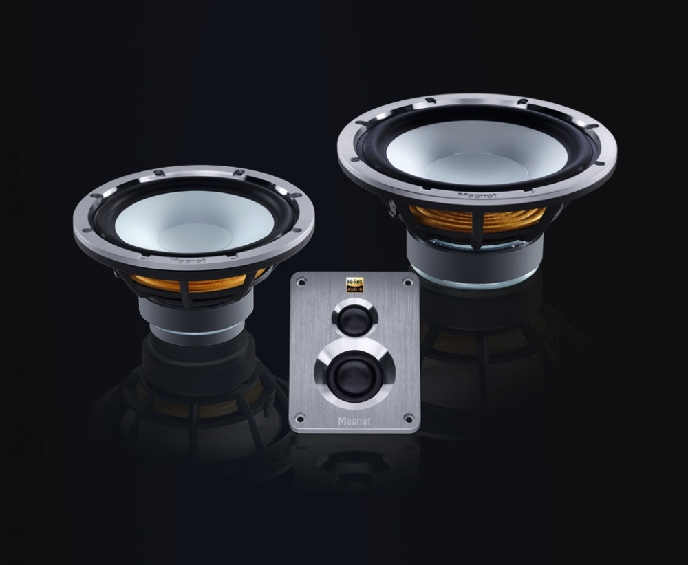 Även det högfrekventa området har teknik som utmärker sig. Här har Magnats ingenjörer utvecklat en diskantplatta med dubbla fmax Signature-domar. Underst finner vi en 30 mm dome som med sin breda upphängning får en större slaglängd jämfört med en konventionell diskant. Detta bidrar till att diskanten får ett bredare omfång neråt i frekvens, som inverkar på en snabbare och mer spänstig återgivningen. Brytningen mellan mellanregistret och diskanten ligger på 2.3 kHz.