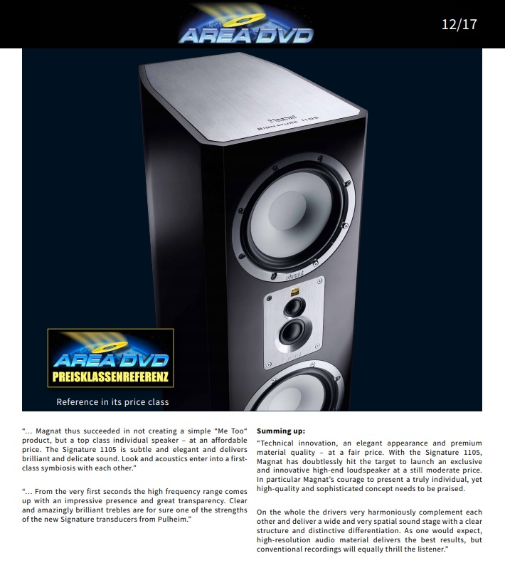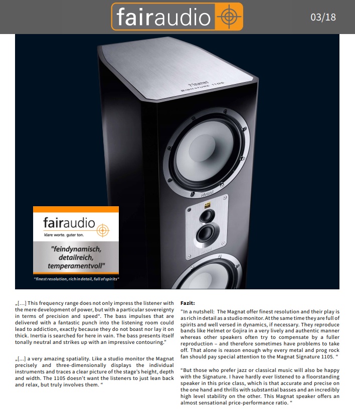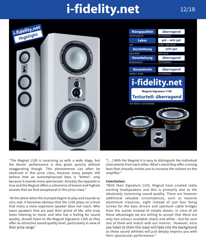 Magnat har en röd tråd genom sina högtalarserier, som delar mycket av samma grundläggande teknik, men med Signature 1105 är den optimerad till max, med enbart selekterade och handplockade komponenter i uppbyggnaden.