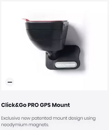 Click&GO PRO mount är ett fäste som har magneter i sig. Kameran fästs i fästet med hjälp av magneter och laddkontakterna får också kontakt magnetiskt i samband med fastsättningen av kameran. Detta innebär att du med en hand kan ta ner kameran utan att behöva dra ut en laddkabel, då laddkabeln fäst direkt i fästet.