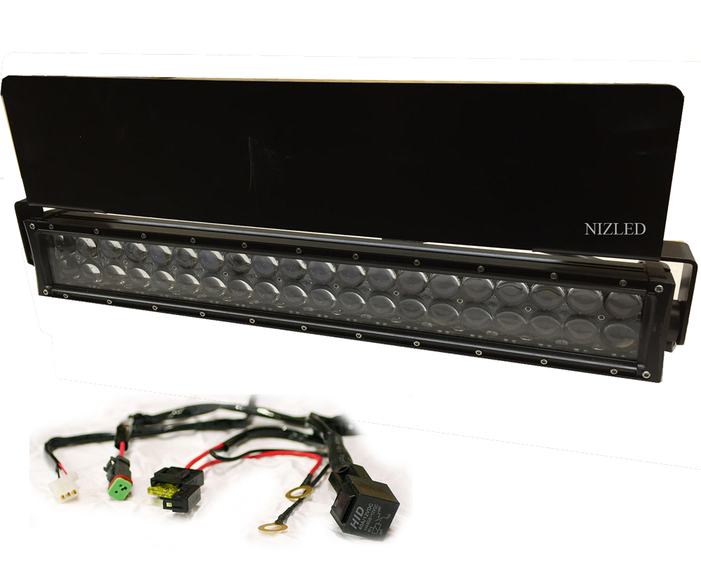 NIZLED ljuspaket med LED-rampen N200-WC på 21,5tum, ett fäste att montera bakom nummerplåten, samt en komplett kabelstam med relä säkringshållare och 2,8m kabel med en DT-kontakt!