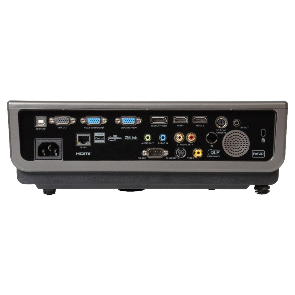Tilslutninger: 2 x HDMI 1.4a, DisplayPort, 2 x VGA in, VGA ud, S-Video, komposit, RJ45, RS232, USB, 12 V trigger