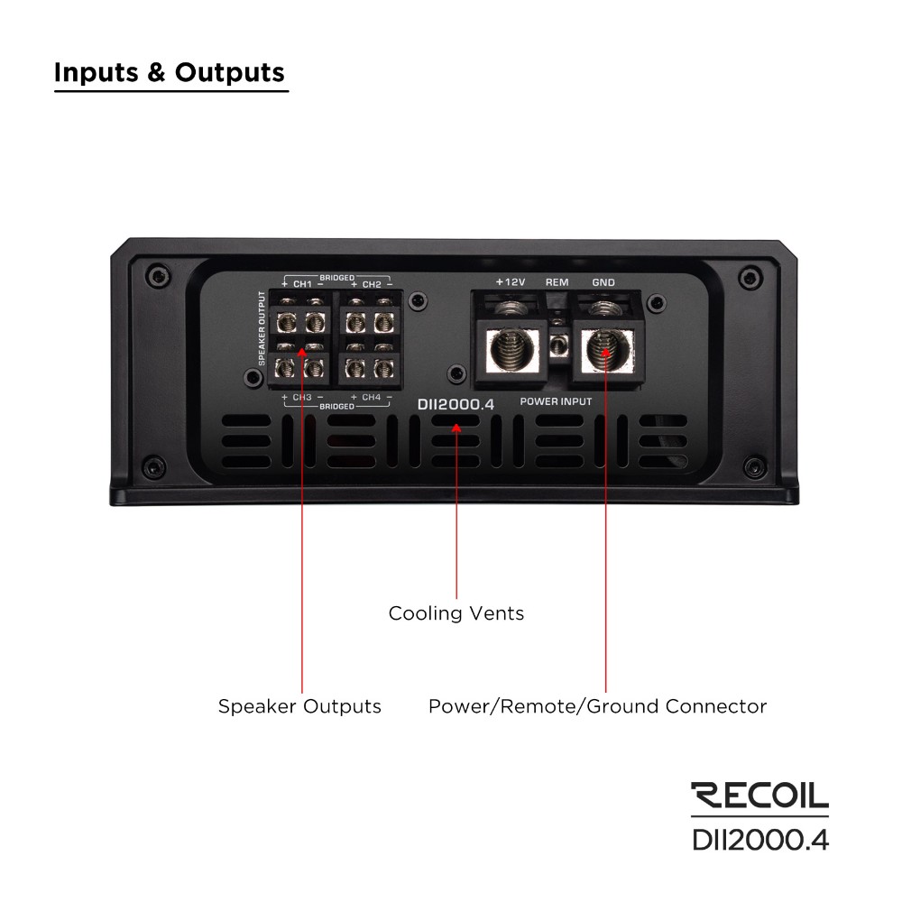 Recoil DII2000.4 er en brutal 4-kanals klasse D-forstærker i DII-serien, lavet til opbygninger, hvor du vil have både tryk og kontrol. Dette er ikke “lidt mere effekt”. Det er en forstærker, du vælger, når du vil drive mellembasser og pro-audio-højttalere rigtigt, spille højt længe og stadig bevare grebet om lyden. Kør 4 kanaler direkte eller brokobling og giv to kanaler ordentligt med kraft. Fleksibiliteten er der for at bygge seriøst.
