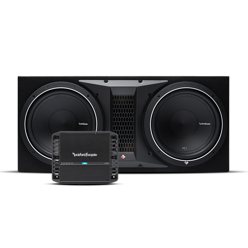 Punchigt og virkelig prisvenligt baspakke med Rockfords egne basboks P1-2x12, og kraften kommer fra P300X1!