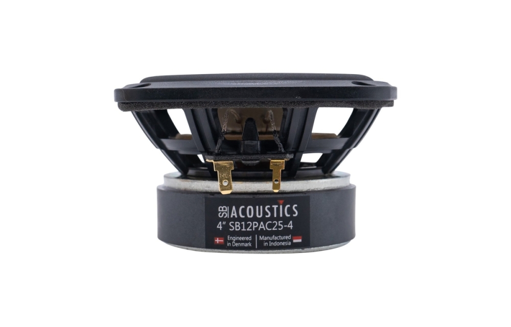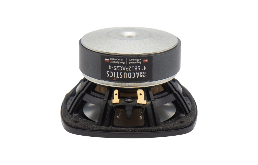 SB12PAC25-4 har et ventileret plastchassis, som minimerer resonanser og letter kølingen af motorsystemet. Aluminiumskonen er både stiv og let, hvilket giver lav forvrængning og hurtig impulsrespons. Gummiophænget er lavdæmpende for at bevare kontrollen over membranbevægelserne uden at gå på kompromis med dynamikken. Den lette talspole af kobberbelagt aluminium (CCAW) på glasfiberstamme reducerer den bevægelige masse og øger pålideligheden.