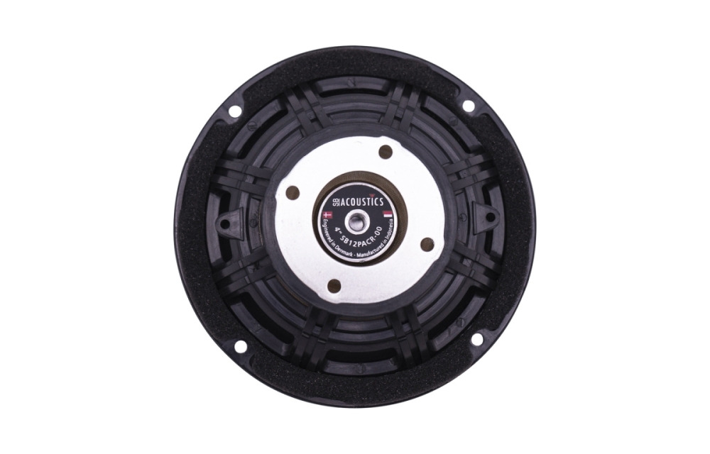 SB12PACR-00 har et ventileret og forstærket plastchassis, der giver stabil montering og lav resonans. Aluminiumskeglen er anodiseret for at reducere egenresonans og øge stivheden, hvilket giver en renere og mere kontrolleret basgengivelse. Naturgummifjederen er langslagig og har lav dæmpning, hvilket muliggør lineær bevægelse selv ved store udsving. Resultatet er en passiv radiator, der kan klare høje belastninger med bevaret kontrol.