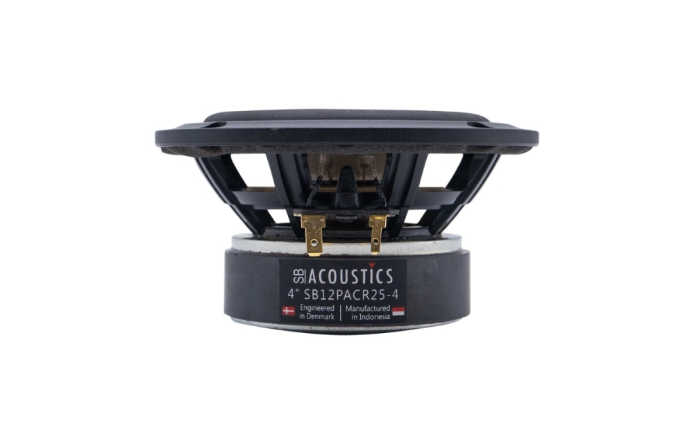 SB12PACR25-4 har et robust ventileret plastchassis, der reducerer luftkompression og forbedrer kølingen, hvilket giver stabil ydeevne selv ved høj belastning. Aluminiums-kon kombinerer lav vægt med høj stivhed for effektiv lydgengivelse. Det lavdæmpende gummiophæng giver hurtig og præcis konbevægelse, hvilket bidrager til klar og dynamisk lyd i mellemtoneområdet. Den ikke-ledende glasfiberstamme reducerer intern dæmpning og forbedrer talspolens levetid.