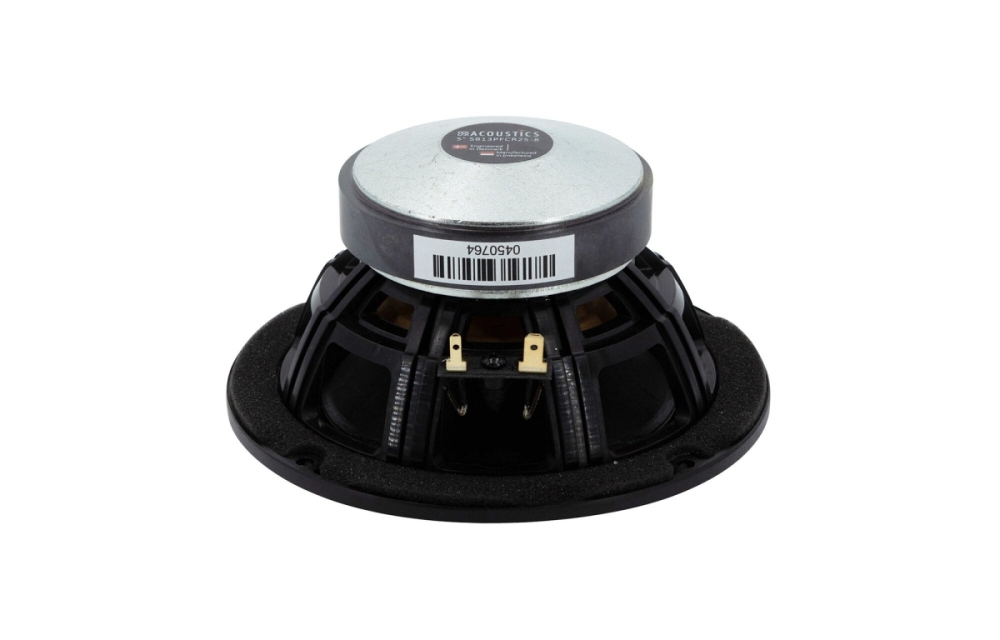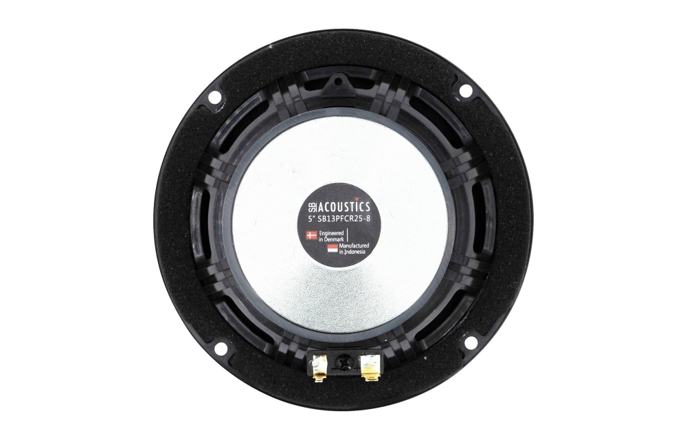 SB Acoustics SB13PFCR25-8 er en 5-tommer midbas fra PFC-serien, som passer til kompakte systemer, hvor naturlig og dynamisk lyd med lav forvrængning efterspørges. Membranen af naturlige fibre giver god stivhed og dæmpning, mens den bløde gummiophæng forbedrer transientresponsen for klarere mellemtone og bas. Den ventilerede konstruktion og det optimerede motorsystem reducerer kompression og sikrer stabil ydeevne selv ved høj belastning.