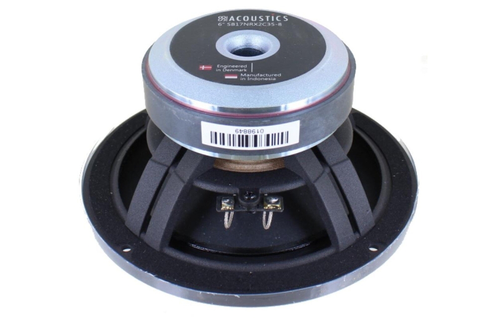 SB Acoustics SB15NRX2C30-4 er en 150 mm (5") bas/mellemtone fra Norex-serien, udviklet til at levere en naturlig og dynamisk lyd med lav forvrængning. Membranen af naturlige fibre giver både stivhed og dæmpning, mens den ventilerede aluminiumsramme og polstykke minimerer kompression og forbedrer kølingen. Talspolen på 30 mm er viklet med let CCAW-tråd for hurtig respons og lav masse, hvilket sammen med den bløde gummiophængning giver en klar og detaljeret mellemtone, der passer til krævende lydsystemer.